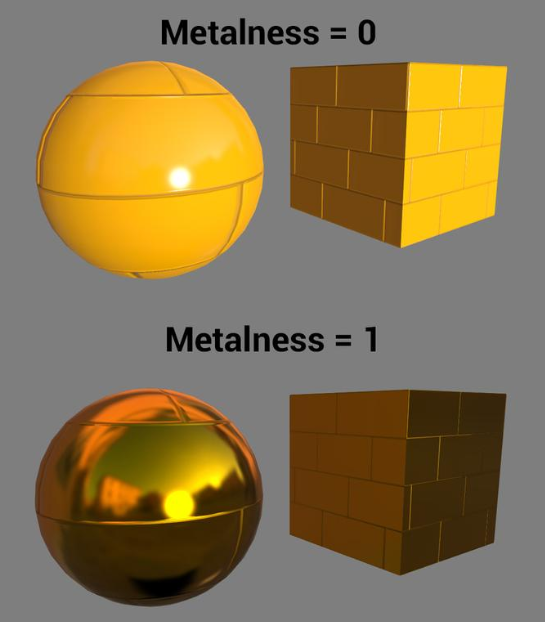 일반적인 정반사(Specular) 빛의 색은 흰색이지만 금속(Metallic) 재질은 고유의 Specular 색상을 가진다.