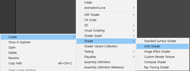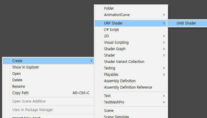 // Unlit 쉐이더 - 템플릿 경로, 메뉴 경로