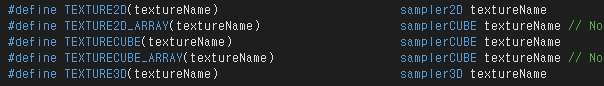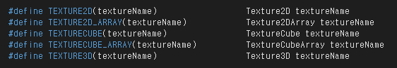 TEXTURE2D 메크로는 GPU칩셋에 알맞는 텍스처 & 샘플링 변수 선언해주는 메크로입니다.