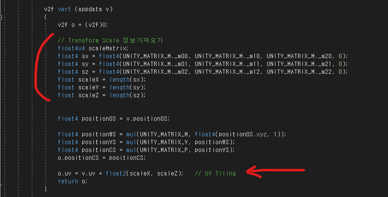 o.uv = v.uv * float2(scaleX, scaleZ); // UV Tiling