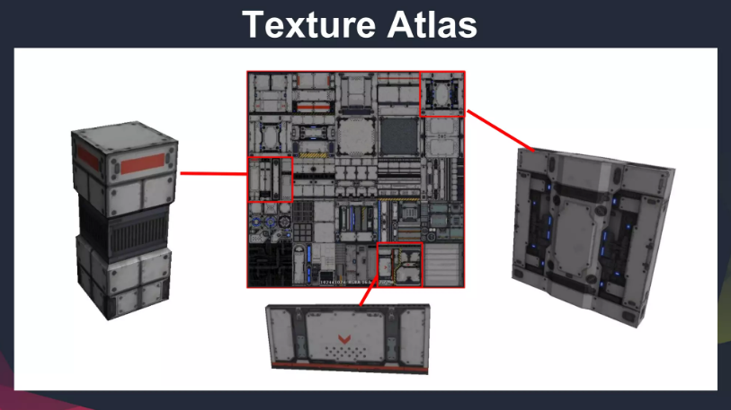 그래서 여러 오브젝트의 텍스처를 한개로 합치는 아틀라스 작업이 필요합니다.