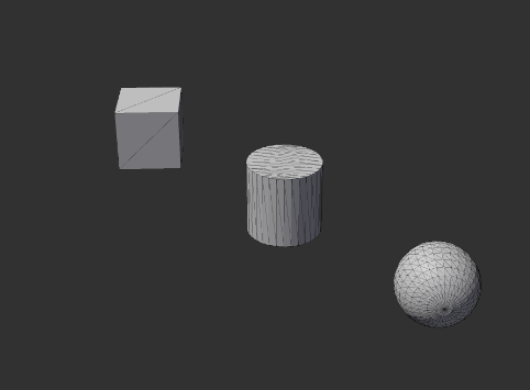 위 예시는 다른 종류의 메쉬 3개와 동일한 Material 1개로 구성된 화면입니다.