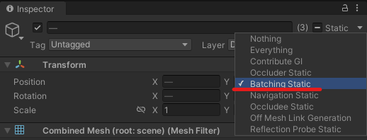 그런데 URP 빌드에서 다이나믹 배칭이 작동하지 않아서 따로 자세한 내용은 다루지 않겠습니다.