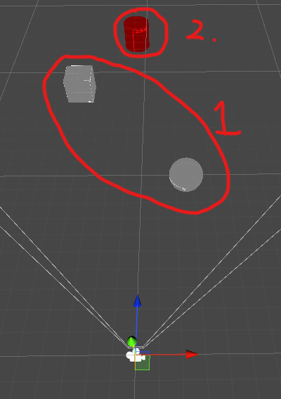 이번에는 다른 Material을 사용하는 오브젝트를 카메라로부터 가장 멀리 위치시켰는데 SetPass Calls가 2개 나오고 있습니다.