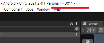 윈도우에서 유니티 에디터를 실행하면 창 타이틀에 DX11 등 그래픽스 API 이름이 표시됩니다.