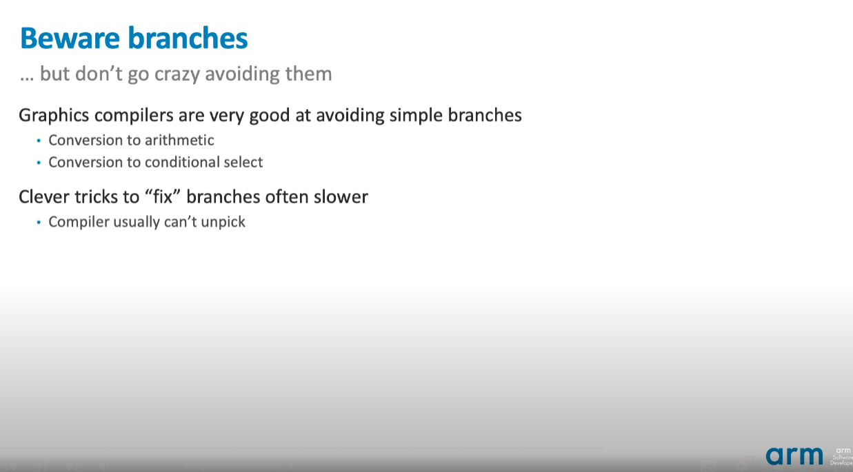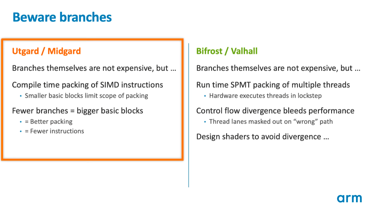 최신 세대 Mali GPU 아키텍처인 Bifrost / Valhall에서는 분기문은 상대적으로 가볍다.