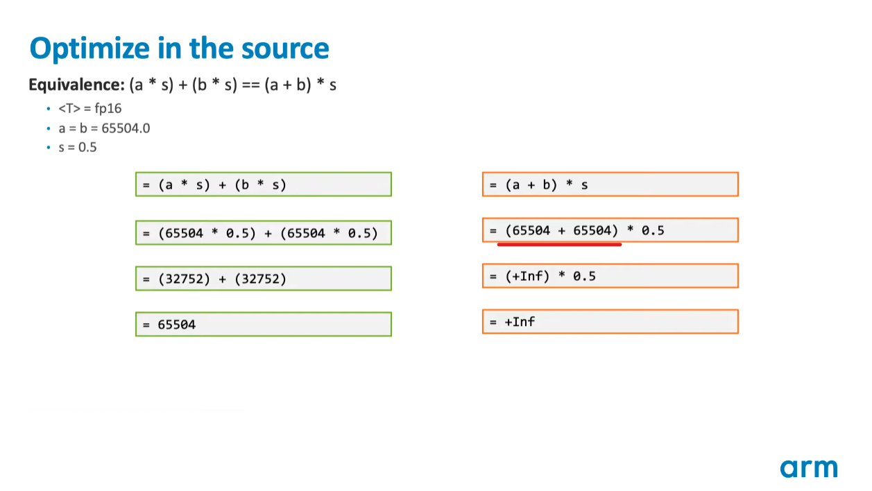 예시로 위와 같이 a와 b에 부동 소수점의 최대값으로 세팅한다면, 우측 최적화 시도한 코드에서 덧셈이 먼저 진행되어 부동소수점이 초과되는 이슈가 발생한다.