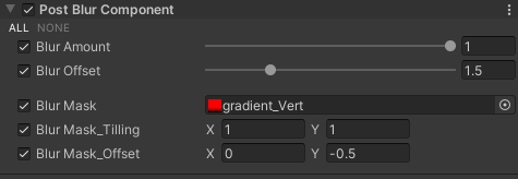 | Blur Mask Tilling Offset | 마스크 텍스처의 Tiling Offset 제어합니다. 응용 예시는 아래 설명합니다. |