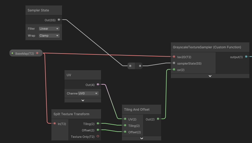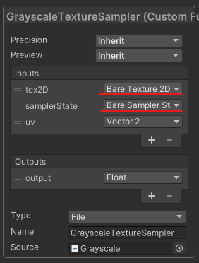 Custom Function 노드에서는 Bare Texture2D & Bare Sampler State 자료형을 사용합니다.