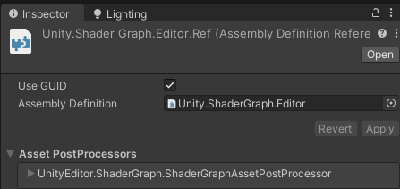 - Project탭에서 아래 메뉴를 통해 Assembly Difinition Reference파일을 생성 후 Unity.ShaderGraph.Editor을 선택합니다.