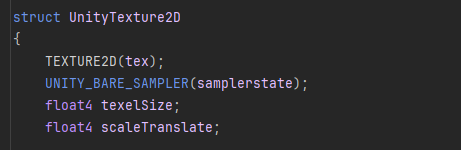 UnityTexture2D 구조체에는 Texture2D와 SamplerState 변수 등이 포함되어 있어, 텍스처의 샘플러 정보가 같이 전달됩니다. UnityTexture2D.tex & .samplerstate 코드 작성으로 사용 가능합니다.