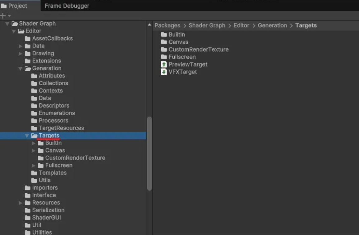 ShaderGraph 패키지에 Universal을 제외한 다른 Target 구현 자료가 있어 해당 자료를 기반으로 Target을 추가하는 방식으로 진행합니다.