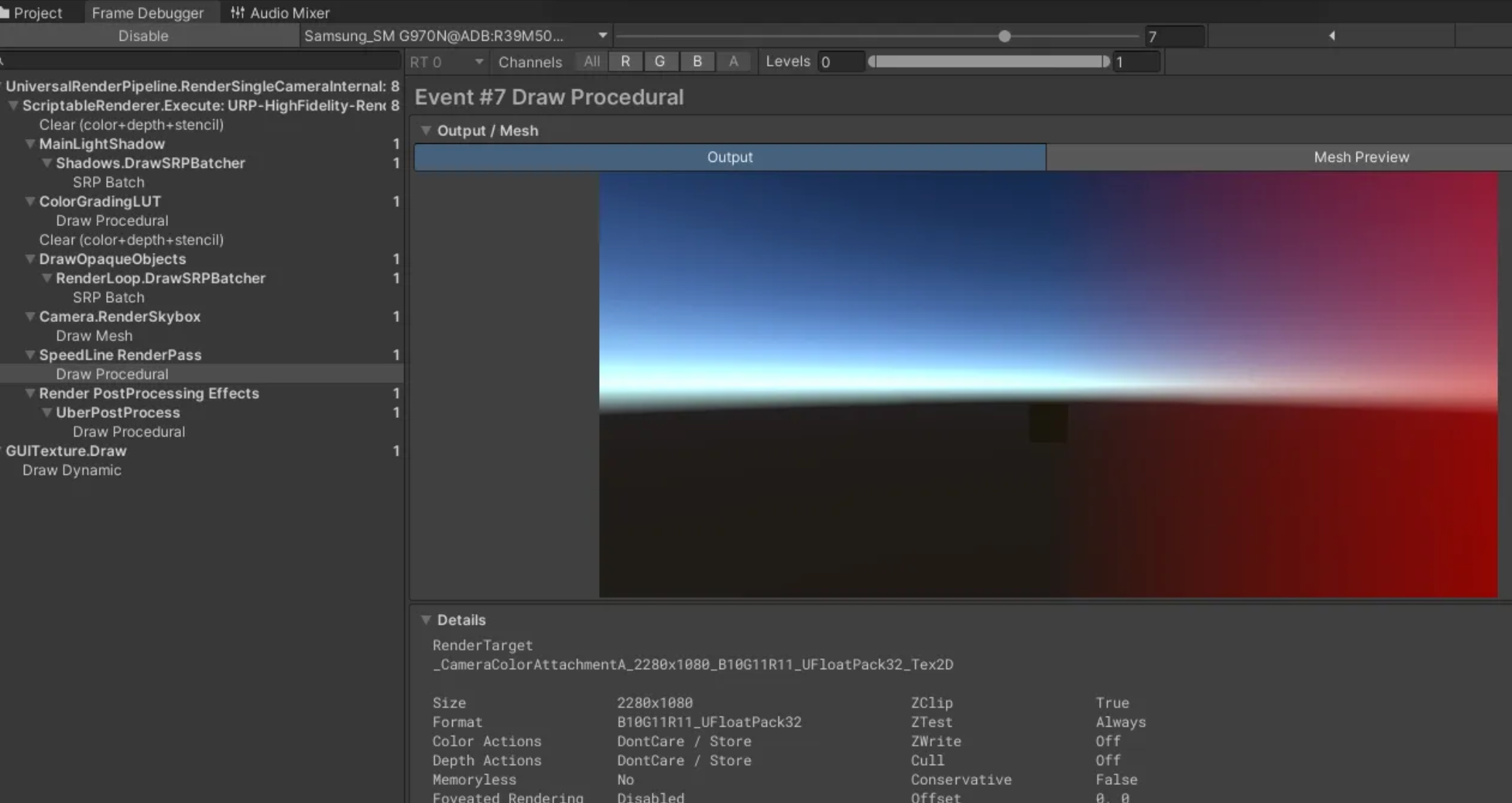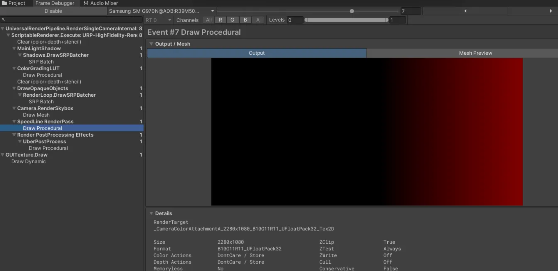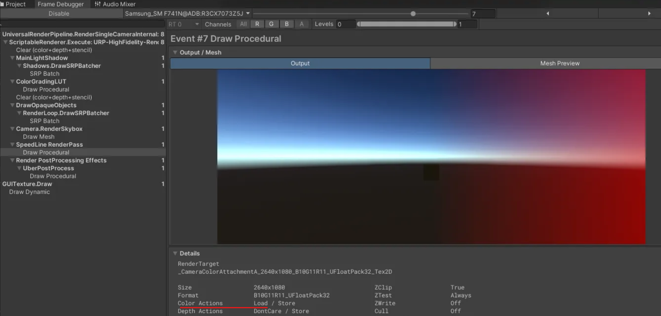 이슈 재현 환경은 LoadAction을 DontCare로 설정하고 Blend 셰이더 드로우콜 호출하게 세팅했습니다.