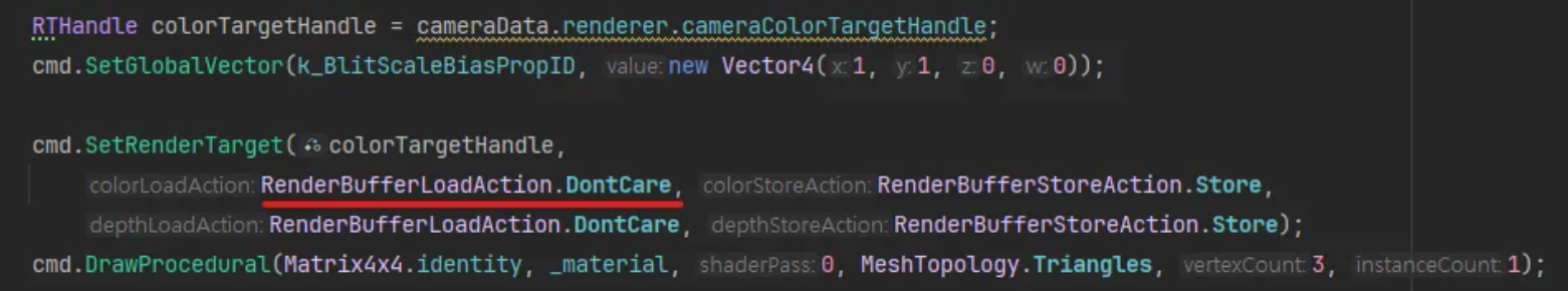 - 기능 : GPU가 렌더링 할 때 기존 프레임 버퍼 내용을 로드하지 않습니다.
