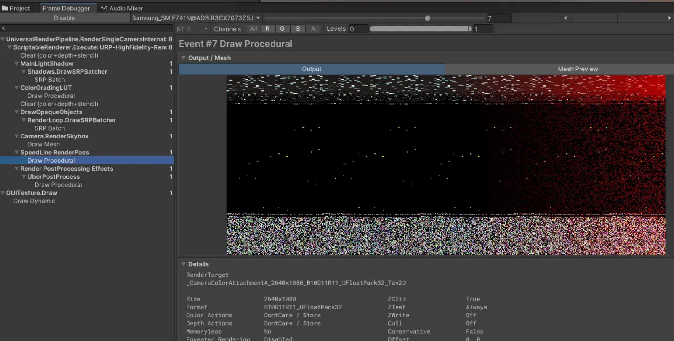 문제는 디바이스 빌드에서 발생하며 안드로이드 기준, GPU 칩셋 종류와 Graphics API에 따라 문제 현상이 다르게 발생합니다.