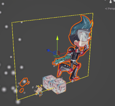 Spine에서 제공하는 Skeleton Render Texture와 목적은 비슷하지만, PerObjectRT 시스템은 3D 월드에서 Spine에 파티클 시스템 및 기타 Renderer 오브젝트를 합친 결과물을 드로우콜로 한번으로 UGUI에 출력할 수 있는 차이점이 있습니다.