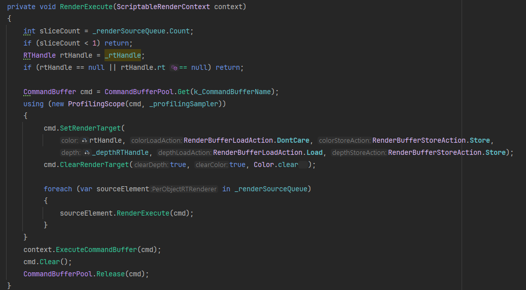 URP 렌더파이프라인을 이용하는 경우, UniversalCameraData로부터 Culling & Sorting 등 처리가 완료된 카메라 프러스텀에 보이는 RendererList가 들어오게 되며, 해당 데이터를 기반으로 렌더링 호출하도록 동작합니다.