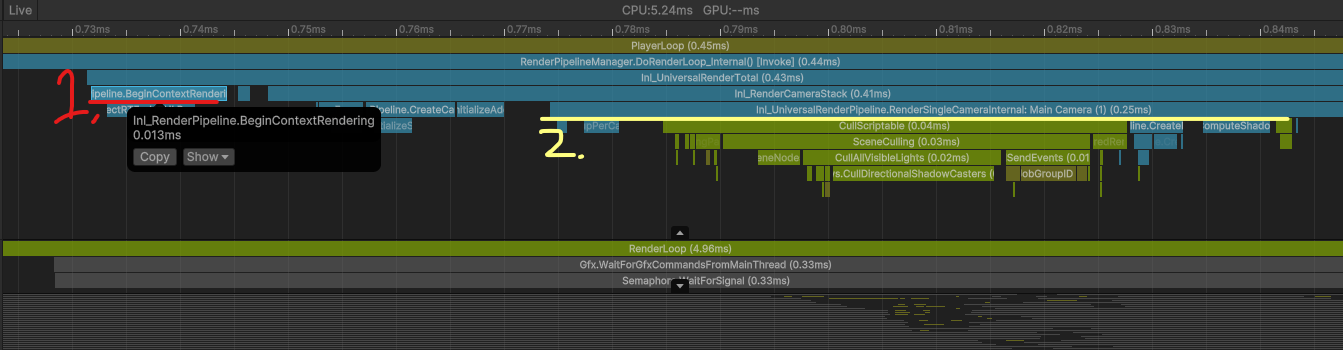 URP 렌더파이프라인은 모두 카메라에서 수집한 정보를 기반으로 동작합니다, 그래서 카메라에서 수행하는 Culling & Sorting 등 비용이 발생하게 되는데, 제작하는 시스템에서는 원하는 오브젝트만 RenderTexture에 렌더링하는 것이기 때문에 이러한 작업은 불필요한 비용 발생입니다.