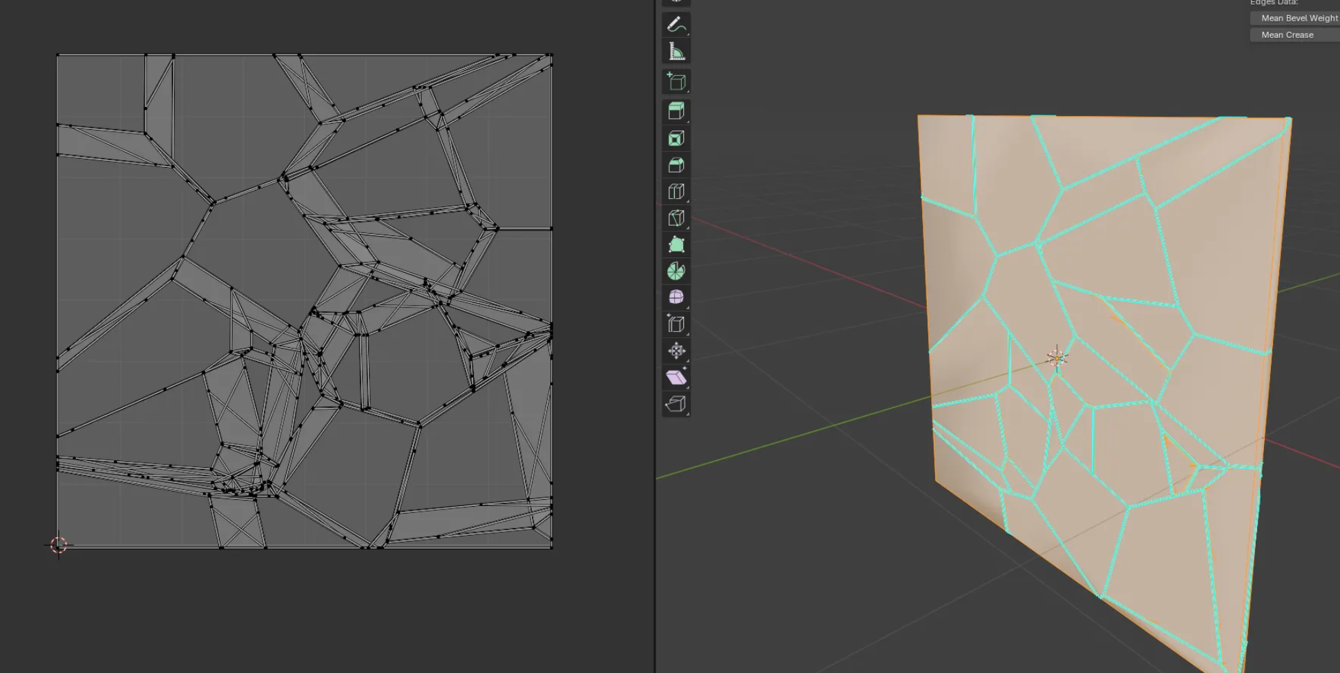 Blender에서 Cell Fracture라는 에드온으로 파괴 시물레이션을 구현했습니다.