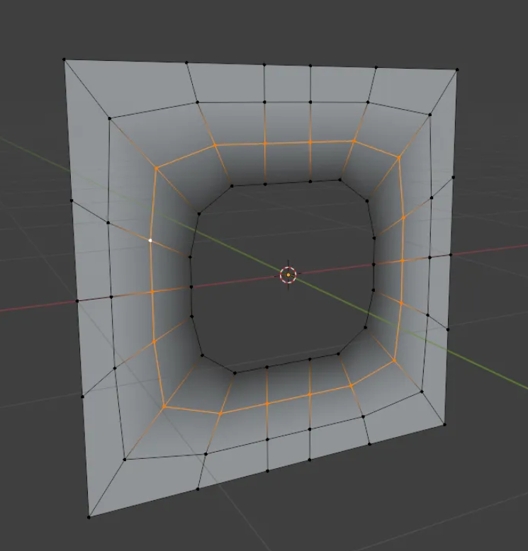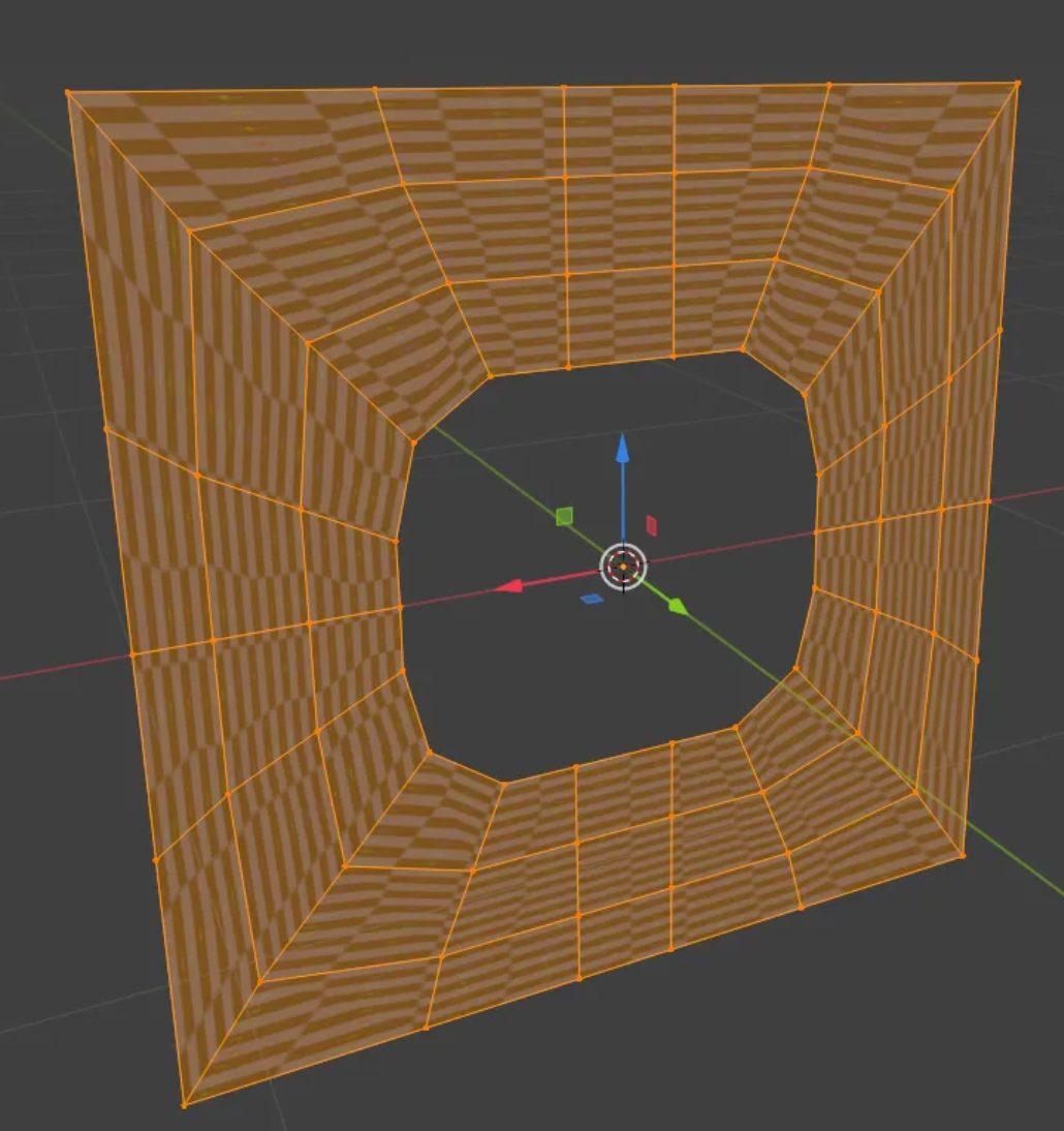 목표한 효과는 이전에 제작한 Polarcoordinate 형태의 메쉬를 사용해도 되지만, 더 나은 최적화를 위해 가운데를 뚫은 형태의 화면 메쉬를 제작합니다.