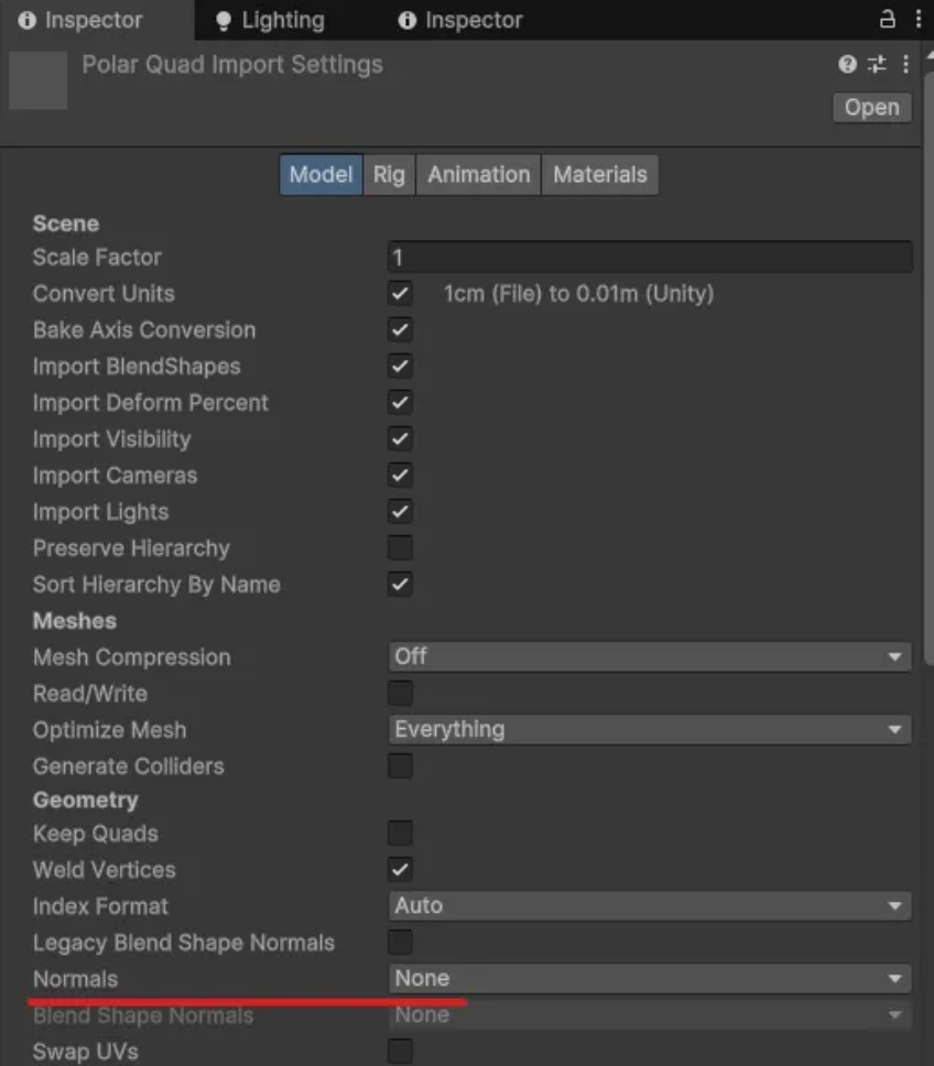 메쉬는 일반적으로 Normal & Tangent 정보가 필요 없기 때문에 제거합니다.