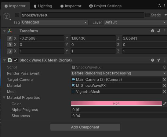 앞에서 소개한 화면 연출 효과는 항상 렌더링되는 것이 아닌, 일반 Particle 이펙트와 같이 일시적으로 생성되고 제거되는 용도입니다. 쉽게 말해서 Bloom, SSAO와 같은 Postprocess와 용도 자체가 다릅니다.