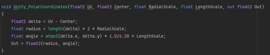 Fragment에서는 이미 PolarCoordinate와 같이 UV가 구성된 Mesh UV 정보를 사용하기 때문에 별도의 UV 재구성이 필요 없습니다.