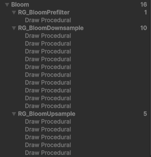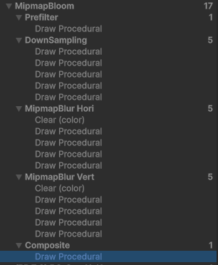 구분URP Bloom (16 pass)Mipmap Bloom (9 pass)차이