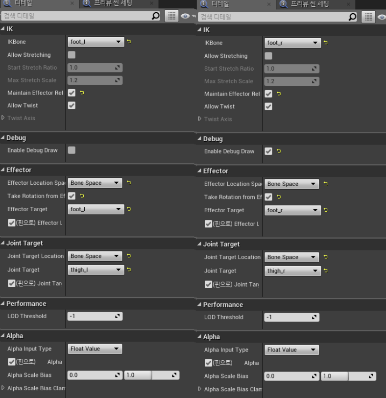앞으로 Foot Offset, HipOffset을 추가로 구현할 예정인데 C++에서 구현 이후 Animation Blueprint에서 동일하게