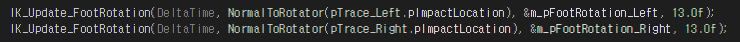 TickComponent함수에 추가하는 코드로 이전에 양발에 LineTrace했던 데이터를 토대로