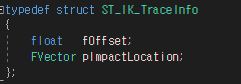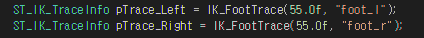 IK_FootTrace에서 반환 되는 구조체는 LineTrace의 HitPoint와 발, 땅의 Offset값이 들어있다.