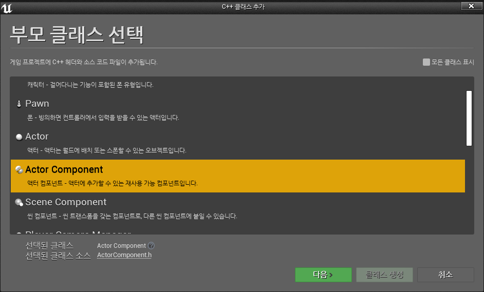 Cpt_FootIK라는 이름으로 ActorComponent C++ 클래스를 제작한다.