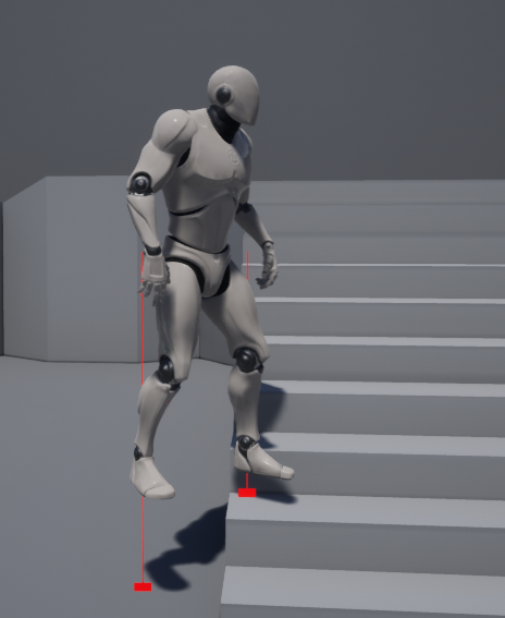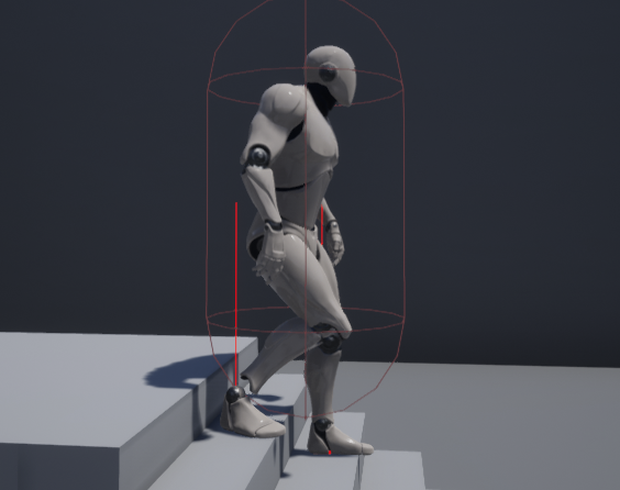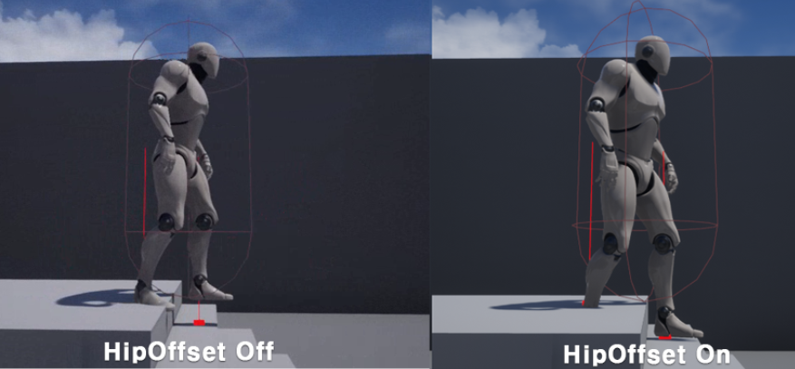 낮은 위치의 발 기준으로 Hip위치를 조절하고 CapsuleComponent위치를 조정한다.