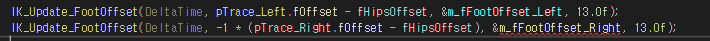 IK_Update_FootOffset(DeltaTime, fHipsOffset, &m_fHipOffset, 13.0f);