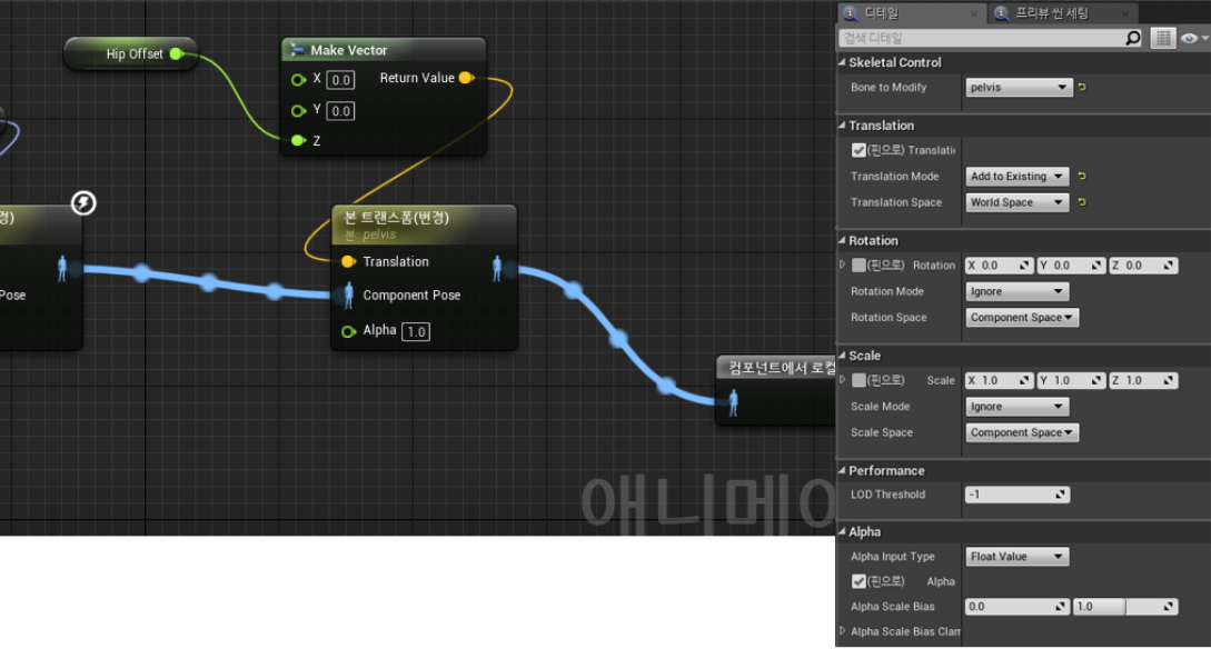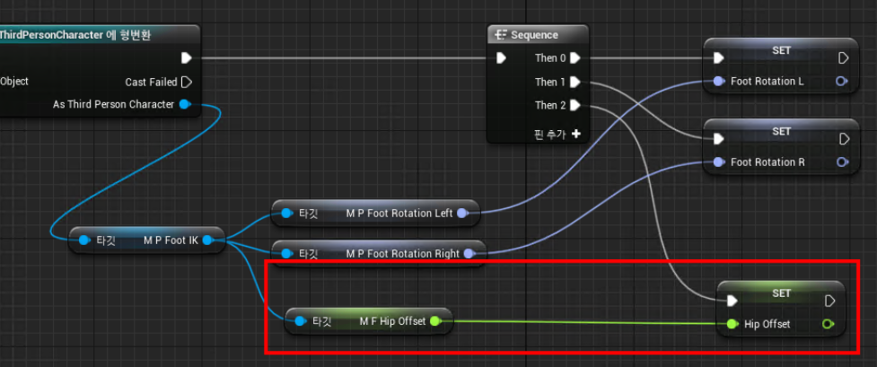 이벤트 그래프에서 위 사진 처럼 HipOffset을 Set한다.
