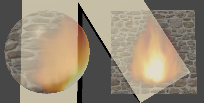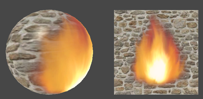 lerp 함수를 통해 불 텍스처의 알파 마스킹으로 2개의 텍스처를 합쳐서 출력 했다.