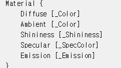 ShaderLab의 Material 구문에 들어가는 명령어 리스트이다.