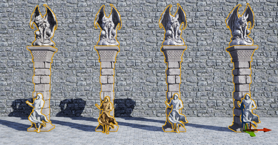 기둥이 총 4개있고 각 기둥마다 3개의 오브젝트를 묶어 놨습니다.