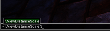 더 응용한 기술로 콘솔명령어중 r.ViewDistanceScale이라는 명령어가 있습니다. 해당 명령어의 기본값은 1이며 만약 0.5을 입력하면 위에서 입력한 Max Distance값을 300입력했다면 150으로 바뀌게 됩니다.