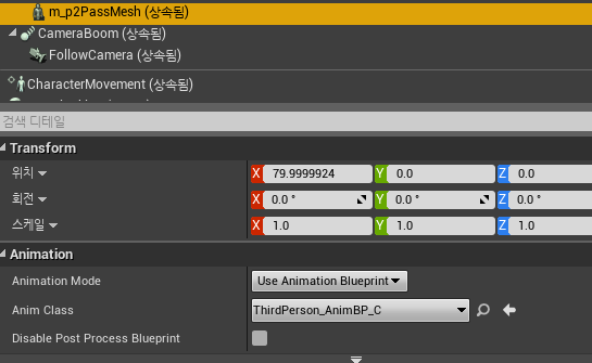 새로 추가한 SKMesh도 원본과 똑같이 애니메이션이 돌아가도록 원본에서 세팅된 Anmiation세팅과 동일하게 합니다.