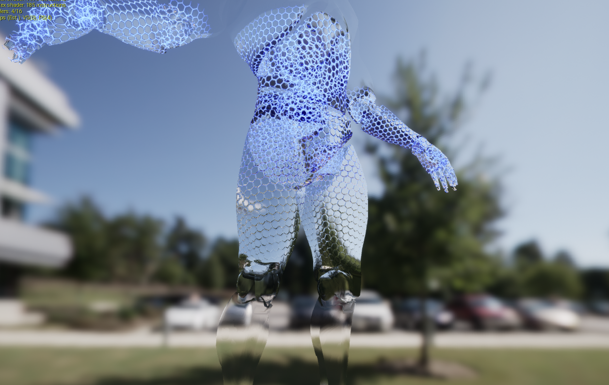 처음에 의도한대로 푸른 Hex패턴 -> 노멀 Hex패턴 순으로 보이고 굴절강도 조절도 됩니다.