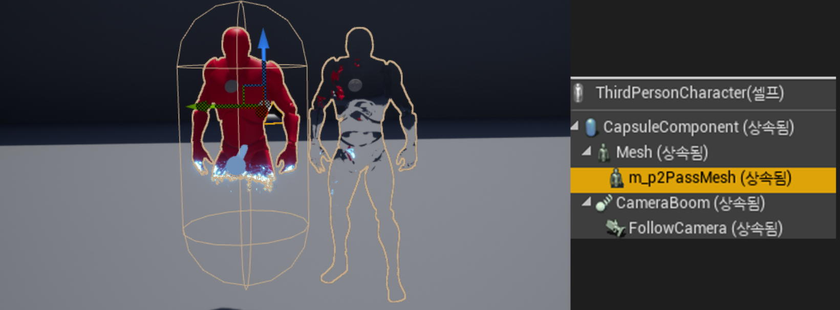 직접 쉐이더를 작성하지 않는 이상 언리얼4에서 2Pass를 구현하지 못합니다, 그래서 직접 SKeletalMesh를 한개더 생성합니다.
