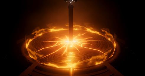 이로서 불의 기운을 가진 파직파직거리며 힘이 느껴지는 봉인된검을 표현했습니다.