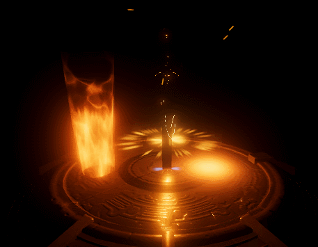우선 실린더 뚜껑을 따서 버텍스칼라로 적절히 모델을 만든다음 FractalNoise소스로 신단의 원을 빙빙도는 불을 표현했습니다.