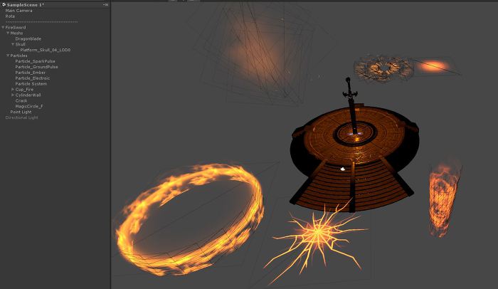 이펙트들입니다. 위쪽 라인은 슈리켄으로 제작했고 아래 쪽라인은 메쉬로 제작했습니다
