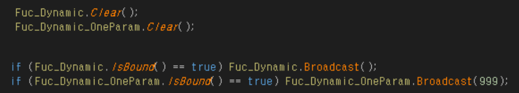 if(Fuc_DeleMulti.IsBound() == true) Fuc_DeleMulti.Broadcast();