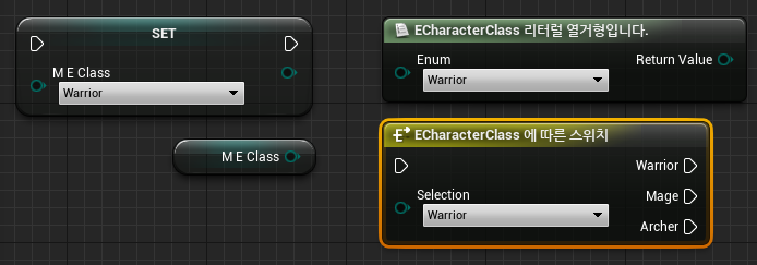 코드 작성하고 컴파일하면 블루프린트에서 위 처럼 Enum관련 노드를 사용할 수 있습니다,