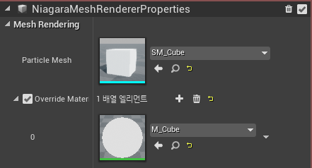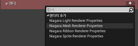 우선 이미터의 렌더타입을 설정해야합니다, 저는 Mesh 타입의 렌더러를 설정하겠습니다.