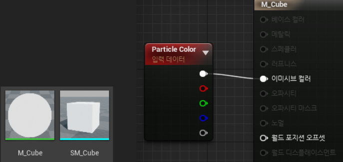 마테리얼은 Opaque, Unlit 설정으로 간단하게 Particle Color 노드를 출력하게 만들었습니다.