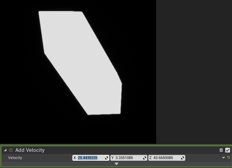 Add Velocity 모듈의 값을 넣어주니 움직이는 것을 확인 할 수 있습니다.